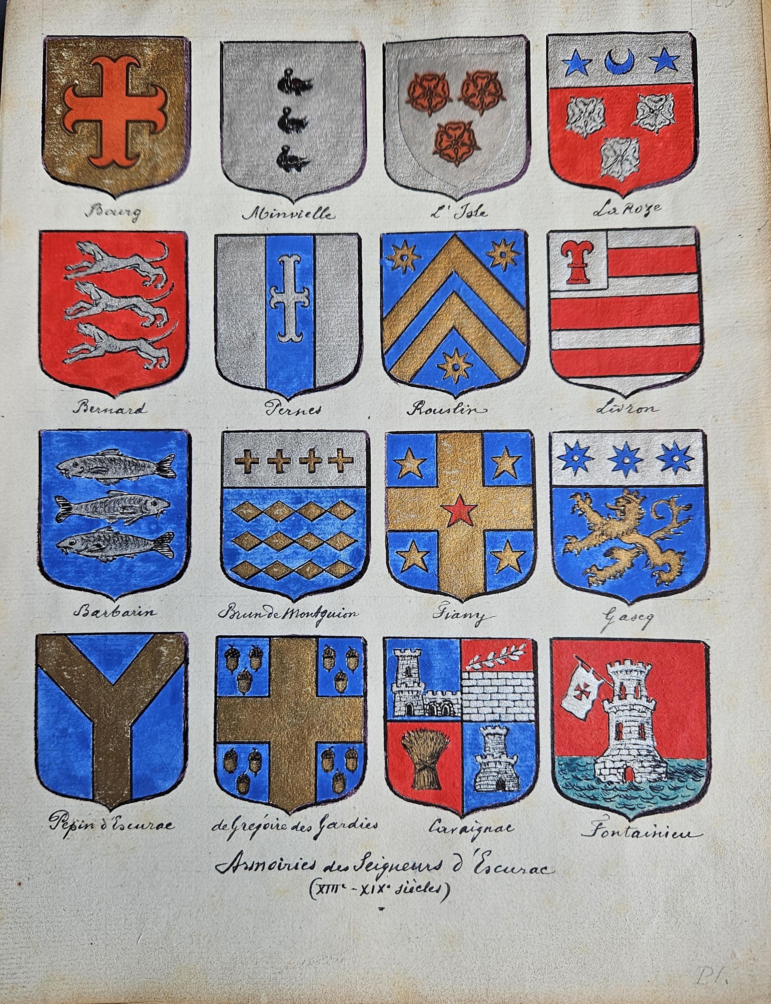 Armoiries des seigneurs d'Escurac : Archives de Bordeaux Métropole, Bordeaux 60 S 1 – Meaudre de Lapouyade, 1945.